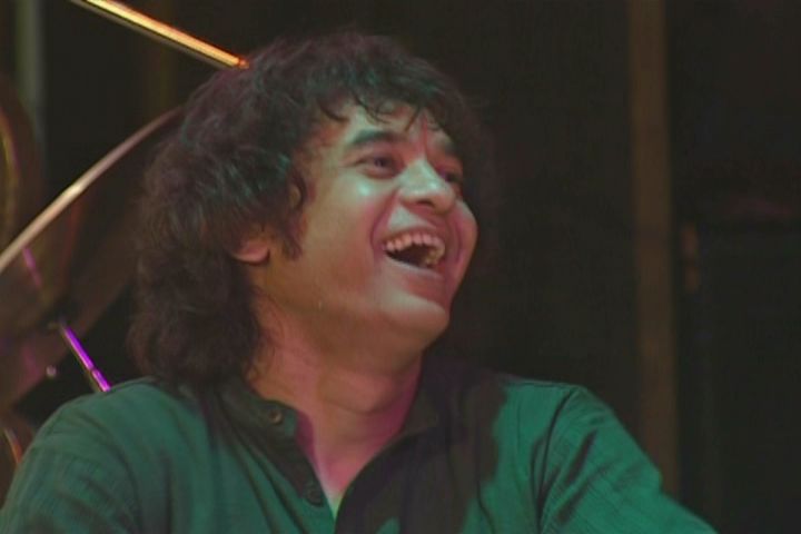 ready to receive. Zakir Hussain reciprocates throwing his head back with joy. JM shares the laughter with Shankar Mahadevan,